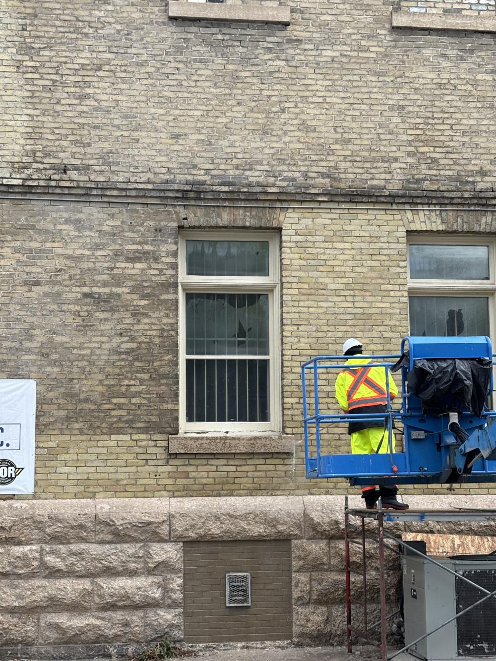 We re-built, re-painted and washed the bricks on this beautiful building on Sherbrook Street in Winnipeg.